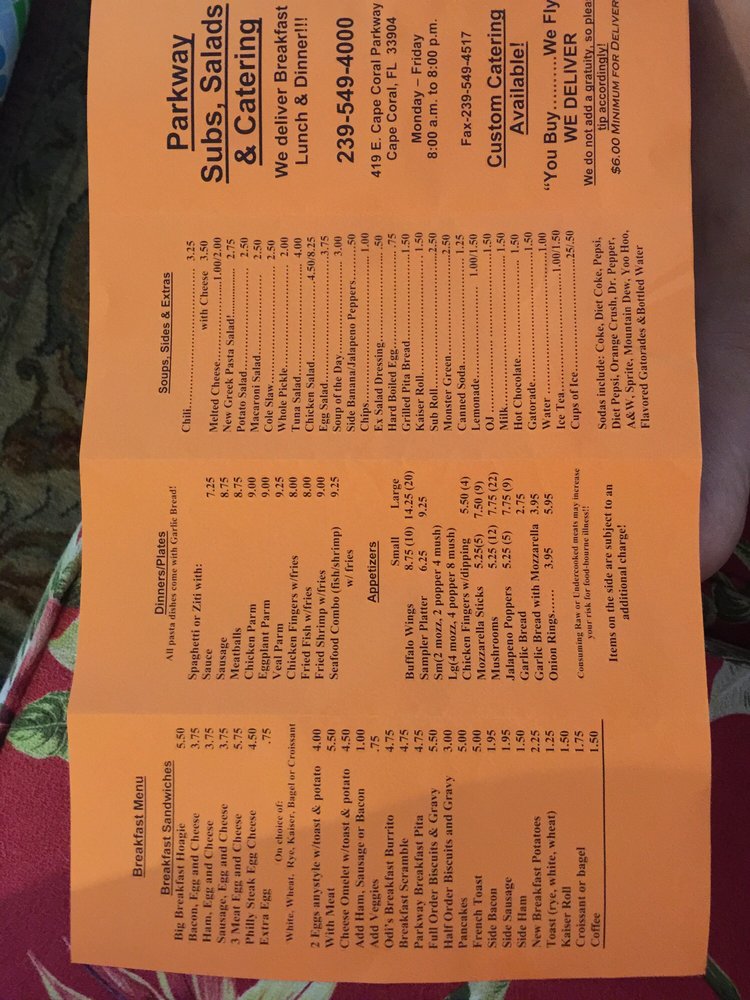 Parkway Subs & Salads Menu (Update 2025)